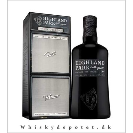 FULL VOLUME blev til ved hjælp af 100% ex-bourbon fade i stedet for vores traditionelle sherry-krydrede. I løbet af 1999 blev en kombination af 481 fade - 200 liter tønder og 250 liter hogsheads - fyldt til styrker på mellem 63,6% og 63,7%. Whisky blev filtreret på lidt over 4 Gr. og leverer smagsstoffer af cremet vanilje og søde citrusfrugter fra bourbon-fade, afbalanceret af Highland Parks karakteristiske aromatiske rygning.